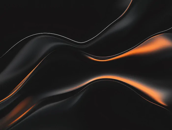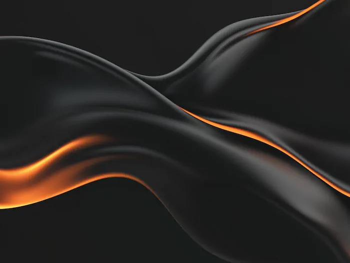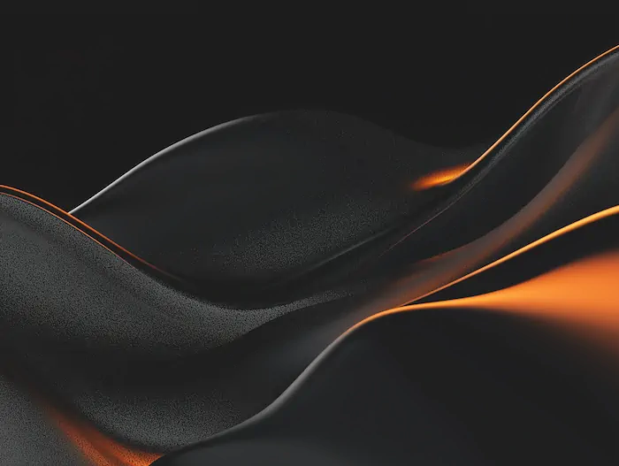 Flowing black surfaces lit with glowing orange highlights.