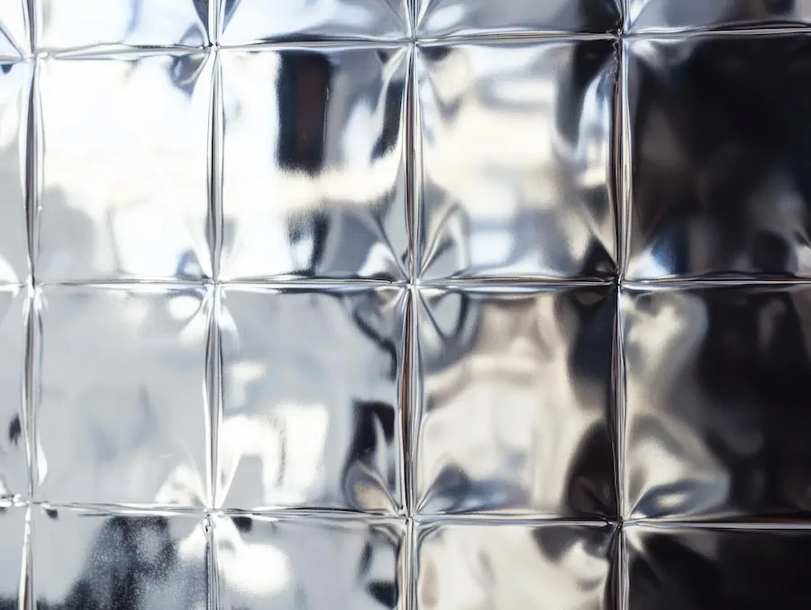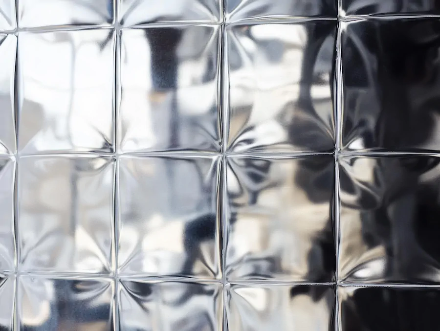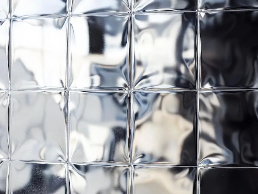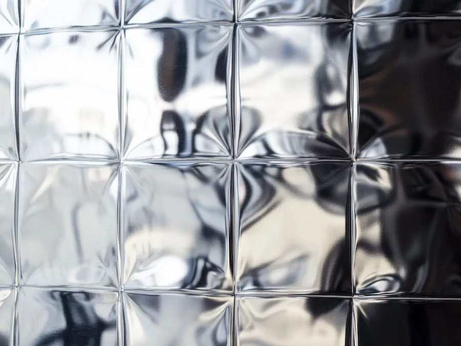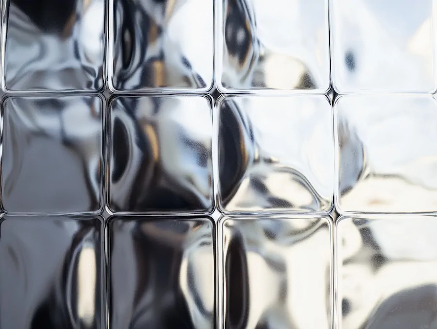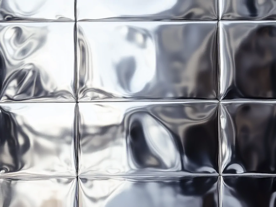 High-gloss metallic panels showing subtle distortions and light reflections.