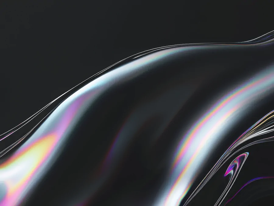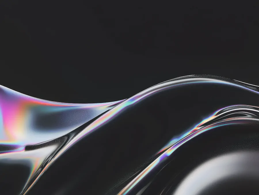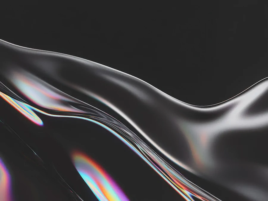 Black fluid folds carry quiet trails of spectral light.